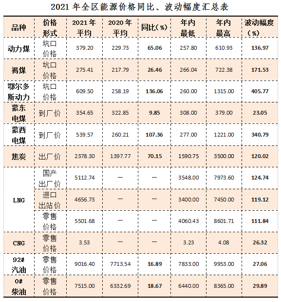 2021年,動力煤價格大起大落,整體價格水平高于上年同期。1-12月,全區動力煤平均坑口價格為379.20元/噸,同比上漲65.06%?