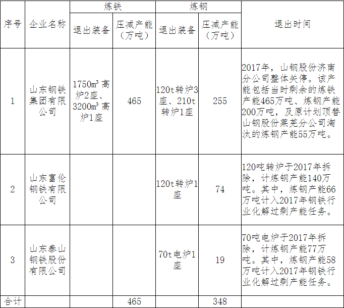 2019年山東省去產能目標:壓鐵465萬噸 鋼348萬噸